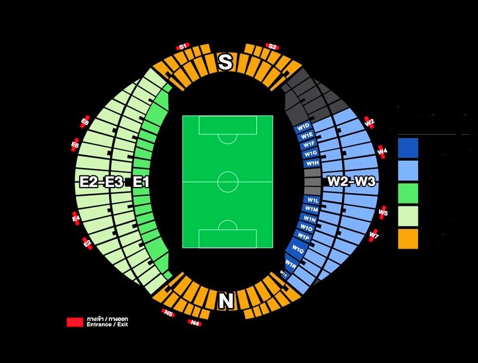 - カテゴリー3(以下の座席図のSまたはN/カーキ色のセクション)を使用します。